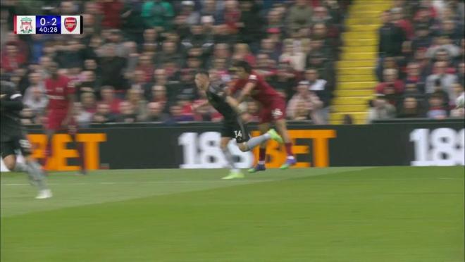 这一幕发生在比赛的第40分钟,在阿诺德将球回传给阿利森之后,扎卡肘击、脚踢阿诺德,后者不甘示弱,背后推搡了扎卡。最终,两人都被蒂尔尼出示了黄牌。