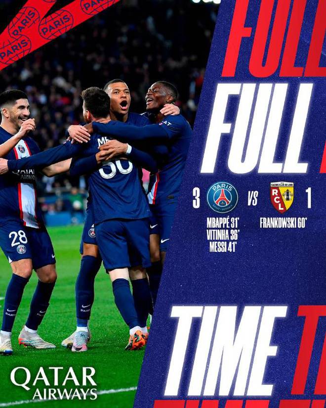 北京时间4月16日凌晨,法甲第31轮焦点战,巴黎圣日耳曼主场迎战朗斯。第19分钟,萨梅德踩踏阿什拉夫,被主裁红牌罚下,朗斯就此少一人作战。第31分钟,大巴黎禁区前踢出精彩配合,维蒂尼亚助攻姆巴佩破门。第37分钟,维蒂尼亚远射建功扩大比分。第40分钟,姆巴佩脚后跟助攻,梅西低射助大巴黎再下一城。第58分钟,法比安·鲁伊斯禁区内手球,裁判判罚点球,弗兰科夫斯基一蹴而就,为朗斯扳回一分。最终,巴黎圣日耳曼3-1力克朗斯。