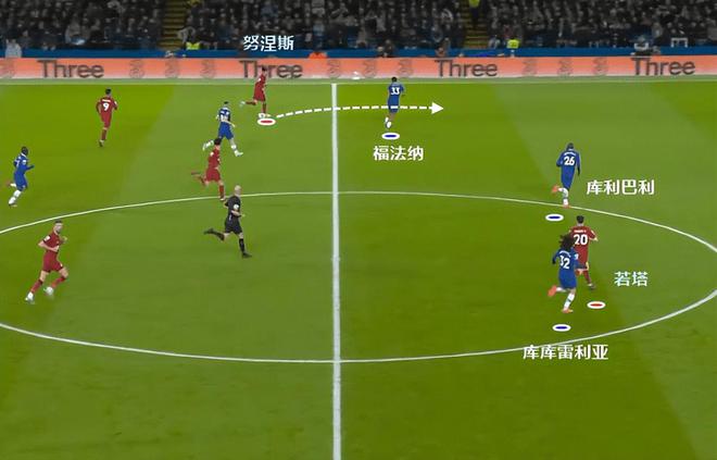 如果边路可以加速推进,那么切尔西的后场也会很难受。问题就是没有萨拉赫和迪亚斯,选择努涅斯作为推进点,他跟福法纳较量时,始终处于下风。
