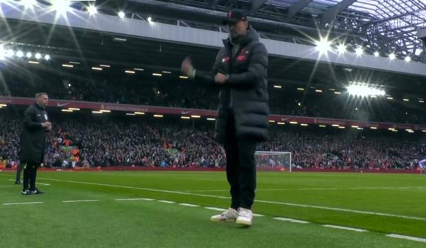 直播吧4月10日讯 利物浦对阵阿森纳的比赛,下半场利物浦获得点球,萨拉赫主罚时,克洛普背过身去不敢看。