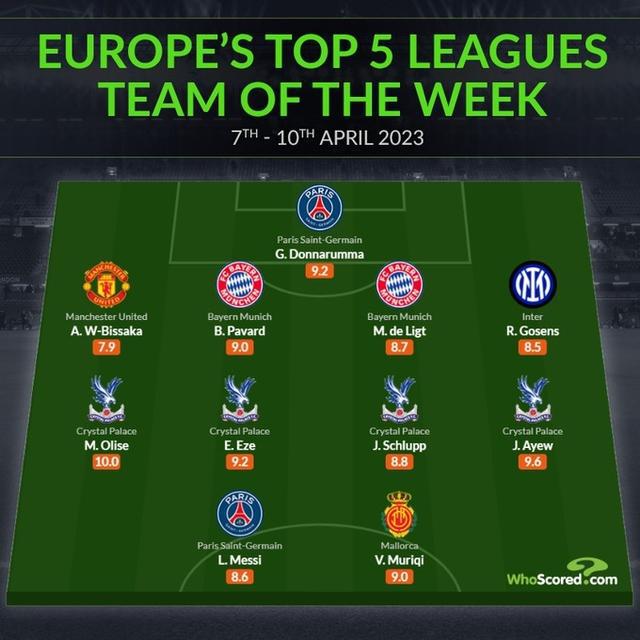 whoscored本周五大联赛最佳阵: