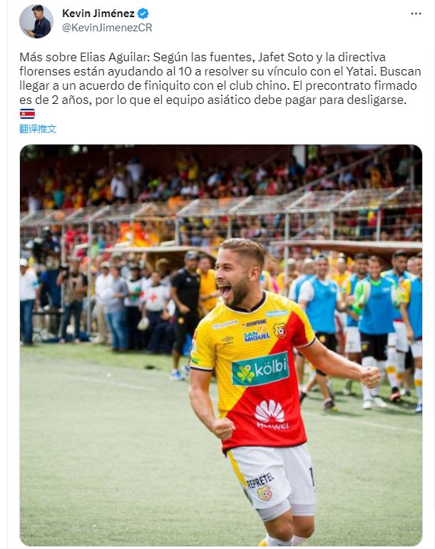 据凯文·希门尼斯的最新消息显示:埃雷迪亚诺的主教练索托·雅费特和体育总监弗洛伦塞斯都已介入了阿吉拉尔和长春亚泰的谈判,他们希望双方能尽早达成协议,从而让球员赶上下赛季(闭幕季)的比赛。