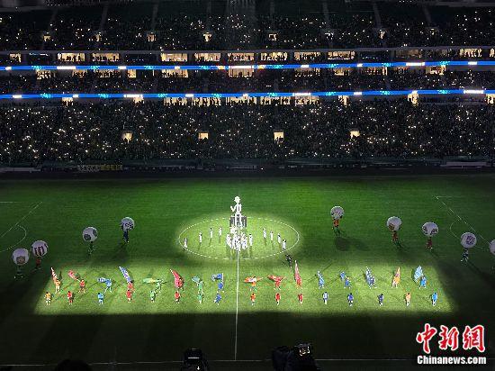 中超揭幕战入场仪式。中新网记者 卞立群 摄