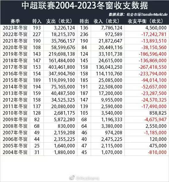 据德转中国区管理员朱艺消息,2023赛季中超联赛的冬季(季前)转会窗口于4月12日24时落下帷幕,13年以来首次整体收支为盈利状态。