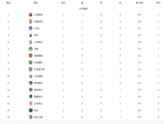 北京时间4月16日,2023赛季中超联赛首轮上演焦点之战,山东泰山客场挑战上海申花。此前6个赛季揭幕战全部赢球拿到开门红的山东泰山0-1不敌上海申花,国家队队长吴曦的一脚传中球意外变成射门破门得分,上海申花历史性连续3年赢得开门红。值得一提的是上赛季中超联赛前三名全部输球,而且1球未进还合计丢了5个球。