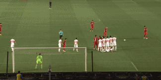 第42分钟,罗慕洛将左侧角球送到后点,刘涛高高跃起头球攻门,但皮球击中立柱外侧弹出底线。