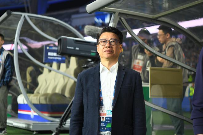平时都穿便装指挥比赛的申花主帅吴金贵,特地穿了一件黑色西装。