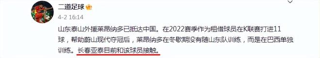 据巴西知情媒体记者透露,莱昂纳多既没有回归蔚山现代,也没有前往圣保罗,而是租借加盟了中超的长春亚泰,后者是2022赛季中超第13名,34场仅有49球,攻击力减退,急需引援补充,莱昂纳多既有实力,又对中超熟悉,也就是泰山实在留不住才放行,亚泰可谓检漏,这笔交易大概率会带来超值体验。