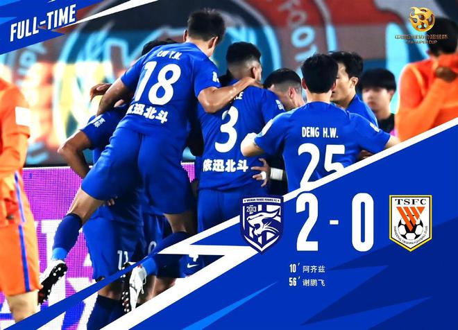 自开场起,武汉三镇队就展开积极的拼抢,并迅速进入到比赛状态中。第10分钟,韦世豪沿边路突入山东泰山队禁区后传中,阿齐兹头槌破门。两位新援联手,助武汉三镇队率先打破场上僵局。下半场,山东泰山队试图通过换人调整改变场上局面,不过武汉三镇队马上还以颜色。第55分钟,武汉三镇队推进到前场,斯坦丘送出直塞球,谢鹏飞顺势以一记巧射,将比分改写为2:0。第81分钟,刘彬彬曾帮助山东泰山队扳回一球,不过经视频裁判介入后,被判越位在先,最终武汉三镇队以2:0获胜。