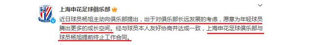 比起引援消息,球迷更关心的是解约官宣,申花与杨旭终止合同,这个结果令人意外,毕竟双方还有合约在身,申花方面也作出了解释,此番解约是杨旭主动提出的,不再继续效力,腾出位置留给年轻球员,这也意味着杨旭主动放弃了薪水,这种操作在过往十分罕见,毕竟,老将即使不出场,也可以有工资收入,但杨旭却主动离开,不仅仅是给年球员机会,也身体力行地帮助俱乐部省去资金压力。