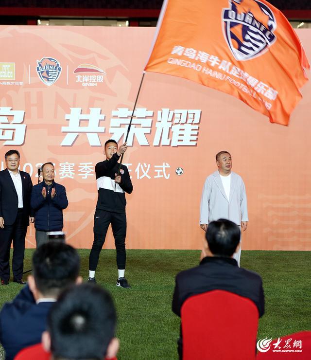 程友新、青岛市体育局党组书记、局长,市体育总会主席车景华,青岛中能集团董事长、总裁乔伟光为球队授旗。青岛市副市长赵胜村在致辞中代表青岛市政府向球队全体将士致以诚挚的问候,赞许海牛无论辉煌逆境,始终保持发展定力,不忘振兴青岛足球的初心使命,通过脚踏实地的不懈努力,再次回到中超联赛的舞台上。新的赛季、新的球场、新的阵容,让岛城球迷有了更多期待,希望青岛海牛的全体将士继续弘扬顽强拼搏、奋勇争先的精神,在新赛季取得优异成绩,用体育精神凝聚起全市人民团结奋斗的磅礴力量,助力青岛加快迈向“活力海洋之都,精彩宜人之城”,谱写建设新时代社会主义现代化国际大都市新篇章!