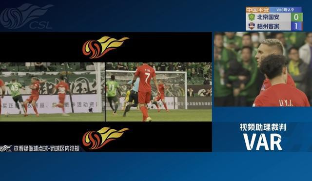 直播吧4月15日讯 中超揭幕战,北京国安vs梅州客家。比赛第50分钟,阿代米突入禁区被杜加利奇放倒后痛苦倒地,主裁马宁未表示,随后前去看VAR判罚点球。张稀哲主罚命中,北京国安1-1梅州客家。