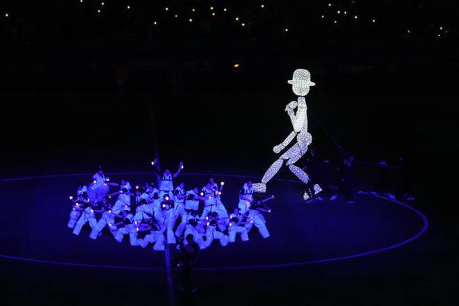 两支由充气人偶组成的“巨人球队”随着音乐的律动在球场中 拉开攻守阵型,是揭幕战的开场秀,更是 2023 中超联赛新的开端。