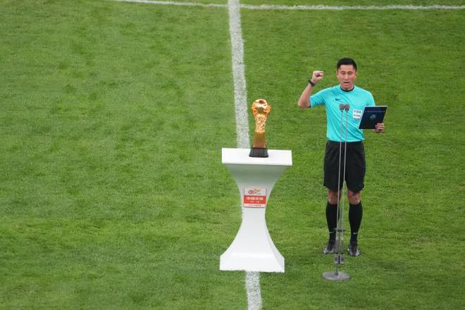 运动员、裁判员宣誓。遵循国际赛事高标准,在火神杯的衬托下,以足球之名,以中超之名。 庄严的仪式承载着每一位赛事参与者对足球的信仰与坚守!