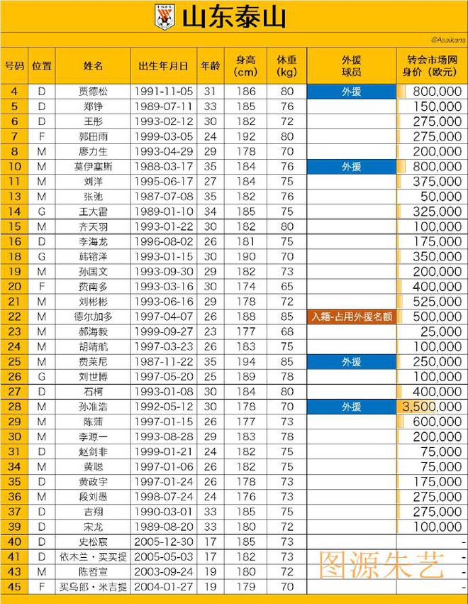 由于新赛季泰山队引援较多,队内位置竞争激烈,包括齐天羽、李海龙、郝海毅、黄聪等球员存在新赛季可能无法报名的可能,但是超级杯的大名单上这4位球员依旧在列。