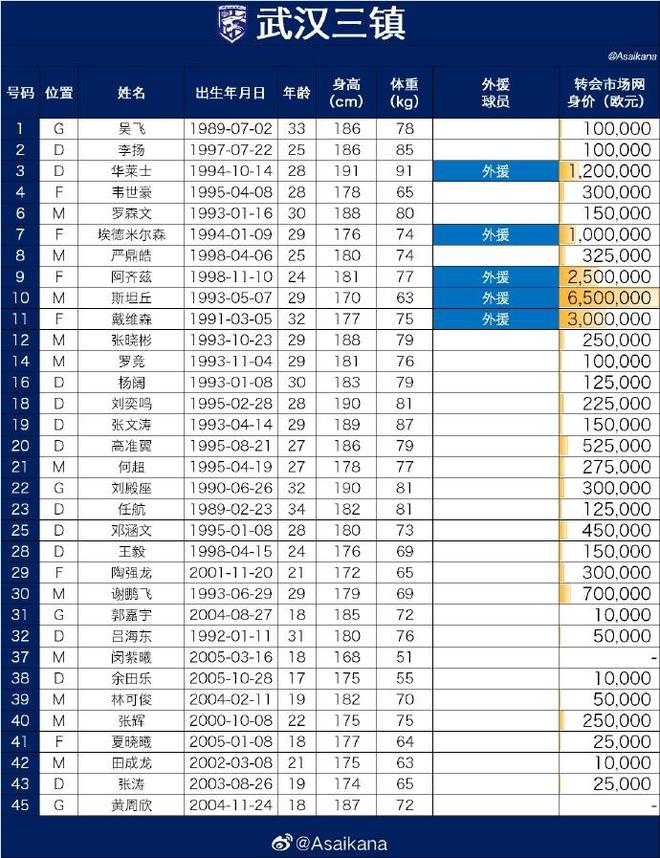 值得一提的是,顶替马尔康的新外援阿齐兹将身披9号,有望在本场比赛中上演首秀。而斯坦丘、戴维森、埃德米尔森和华莱士都在名单之中,但只能有4名外援同时在场。
