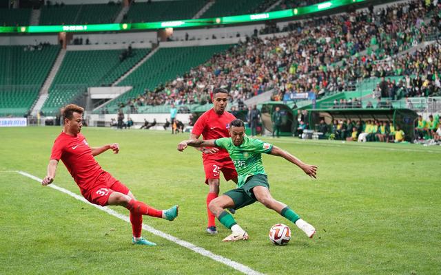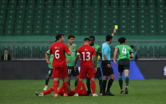 北京国安与梅州客家再次战平,此役双方共有7人吃到黄牌。 新京报记者 王飞 摄
