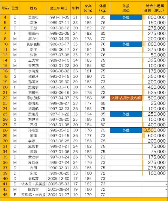 目前,山东泰山的参赛名单已经出炉(德转管理员发布)。贾德松、莫伊塞斯、费莱尼、孙准浩4大外援领衔,归化国脚费南多和归化球员德尔加多也榜首有名。除此之外,新援孙国文、刘世博、李源一、黄政宇、胡靖航也进入参赛名单。球队的头号射手克雷桑因为停赛未能进入名单,而另一名备受球迷们期待的新援童磊,因为转会手续尚未完成,未能随队征战超级杯的比赛。