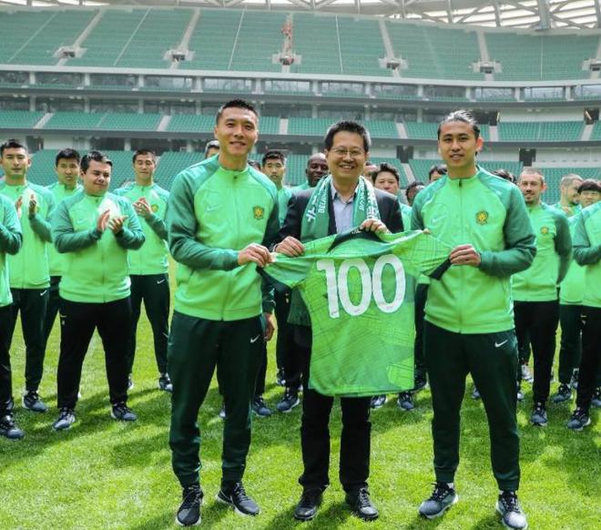 为了给队员和教练组打气,中赫集团董事长、北京国安足球俱乐部董事长周金辉前往新工体,看望了正在训练的北京国安一线队。