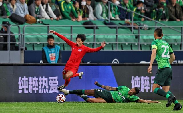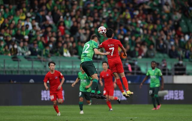 北京国安主场对阵梅州客家,上半场,叶楚贵在乱战中爆射,打入新工体首球。半场战罢,梅州客家1比0领先北京国安。
