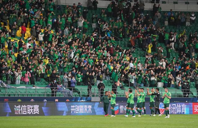 赛后,国安球员向球迷致谢。